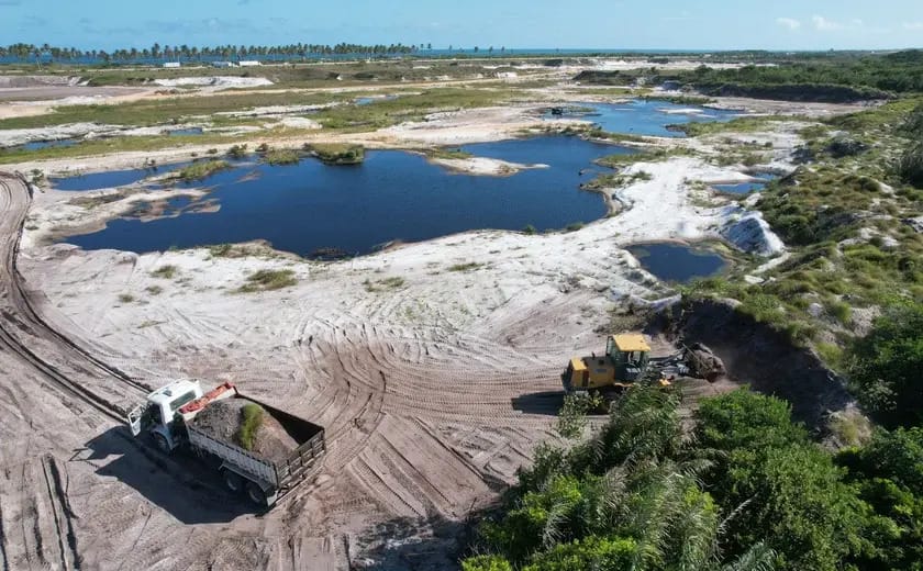 No Nordeste, a areia é retirada de dunas e restingas, ecossistemas frágeis que protegem a costa.