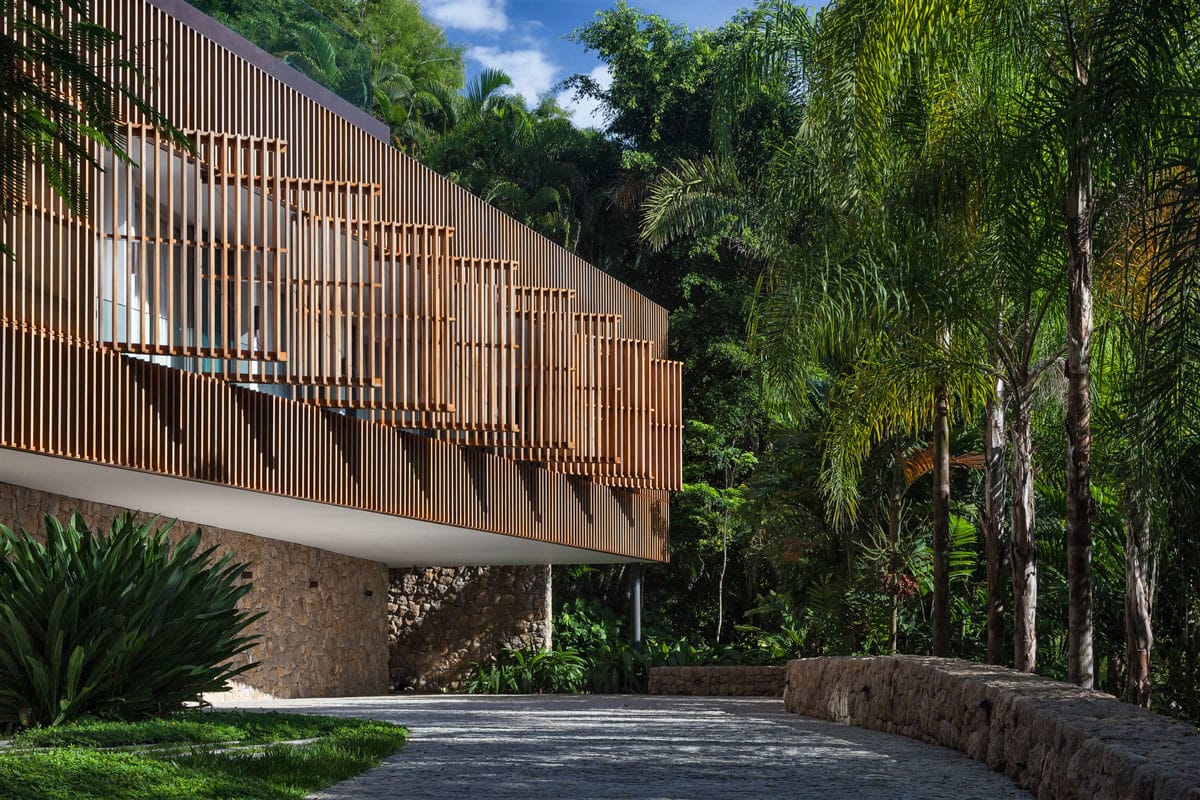 Os brises em materiais naturais, como madeira e bambu, são uma excelente opção para quem quer reforçar a conexão com a natureza. Além de contribuírem para a estética biofílica, esses materiais são renováveis e têm baixa pegada de carbono. Eles costumam ser usados em projetos residenciais e comerciais que procuram um visual mais acolhedor e orgânico.