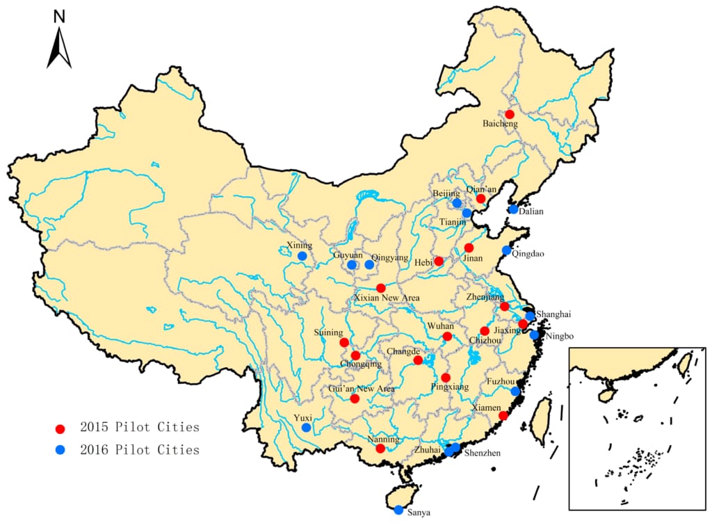 Cidades-piloto do plano de cidades-esponja na China. Referência: galileiinstitute.it